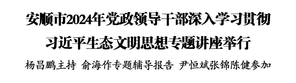 10月9日,安顺市2024年党政领导干部深入学习贯彻习近平生态文明思想专题讲座举行。安顺市委书记杨昌鹏主持讲座。习近平生态文明思想研究中心副主任、生态环境部环境与经济政策研究中心副主任俞海作专题辅导报告。安顺市委副书记、市长尹恒斌,市政协主席张锦,市委副书记陈健,市委常委,市人大常委会、市政府、市政协有关负责同志,安顺学院、安顺职院党委书记参加。