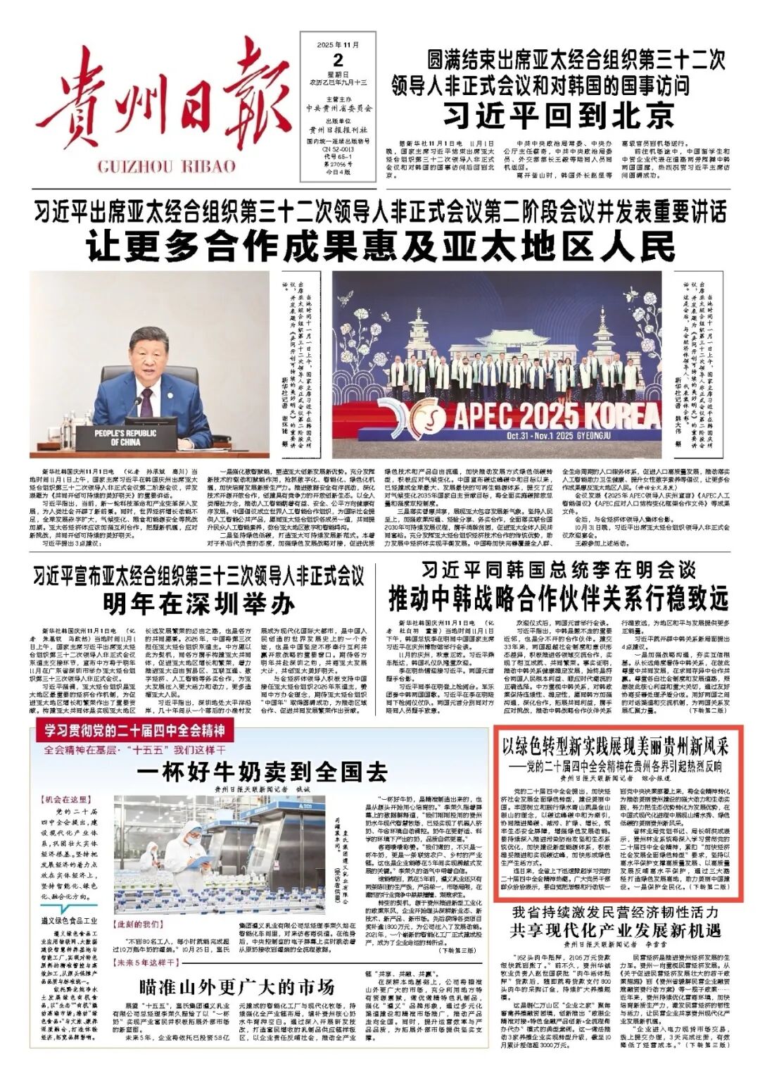 “作为推动区域产业升级与绿色发展的重要力量,我们始终将生态优先、绿色发展理念深植于生产经营全过程,深感使命在肩,责任如磐。”贵州黔希化工有限责任公司总经理孙建堂表示,企业将深入学习贯彻落实全会精神,一方面坚决守牢安全底线、提升风险防控能力,聚焦绿色低碳发展,抓好“两煤一电”节能技改,在科技创新领域深耕细作;另一方面以数智赋能提升生产管控水平,发挥好龙头作用,秉持开放协同理念,加强产业链上下游耦合链接,推动多产业链协同发展,为区域经济绿色转型注入更强动力。