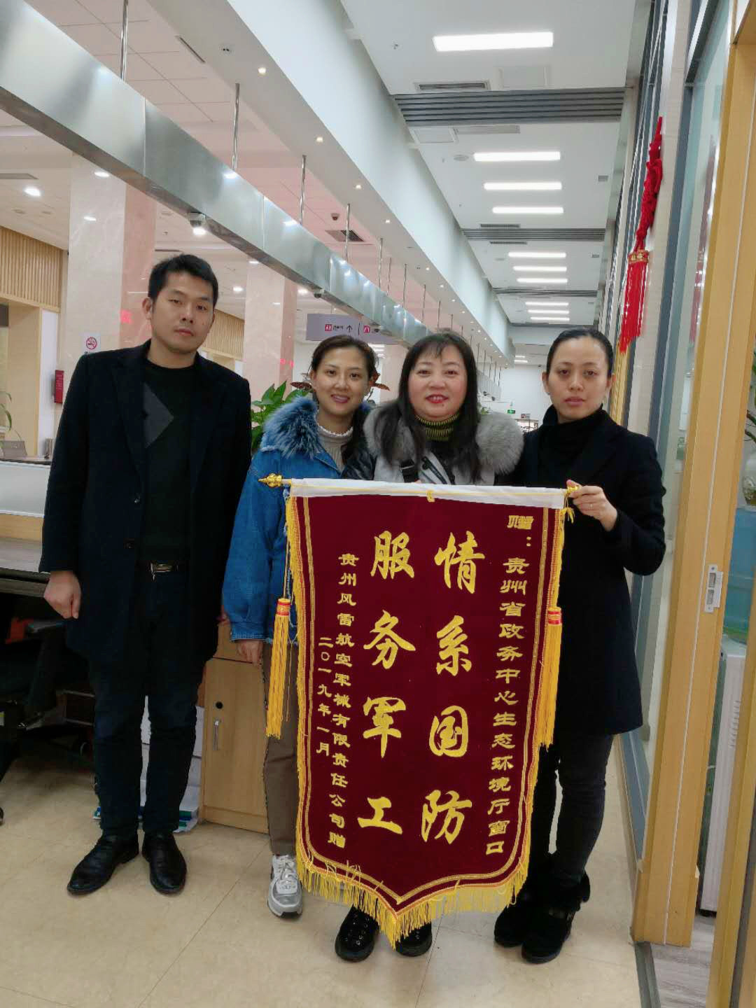 省生态环境厅窗口收到贵州风雷航空军械有限责任公司的锦旗