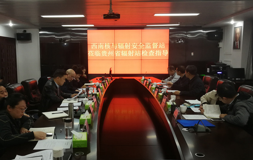 2019年3月20日-3月22日,国家生态环境部西南核与辐射安全监督站严天文副主任一行5人到贵州省辐射环境监理站开展辐射安全例行检查,省生态环境厅党委委员陈程副厅长、厅辐射处林晓珊处长、省辐射站张韬站长陪同。