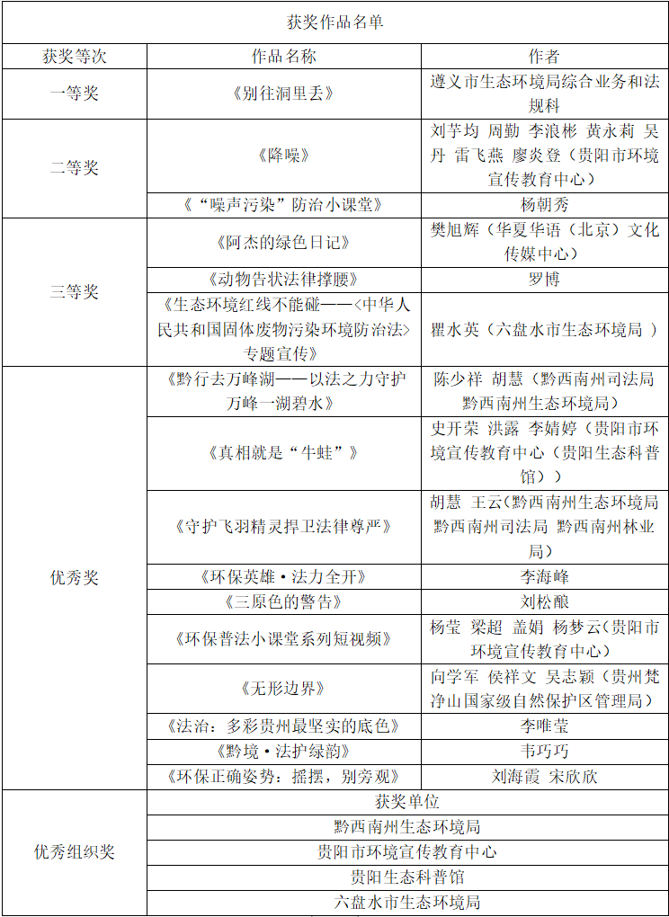 “法润黔景·绿动未来——贵州生态环保普法短视频大赛”评审结果公示