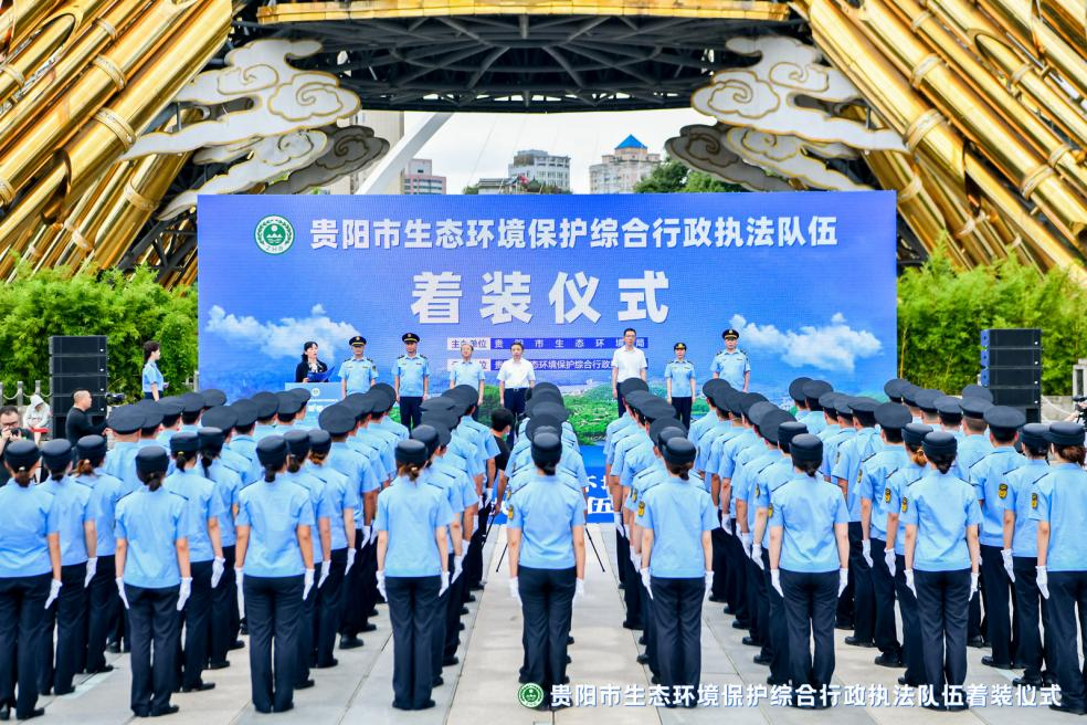 8月14日,贵阳市生态环境保护综合行政执法队伍着装仪式在筑城广场举行,标志着贵阳市生态环境行政执法队伍标准化、规范化、制度化建设迈上了新台阶。