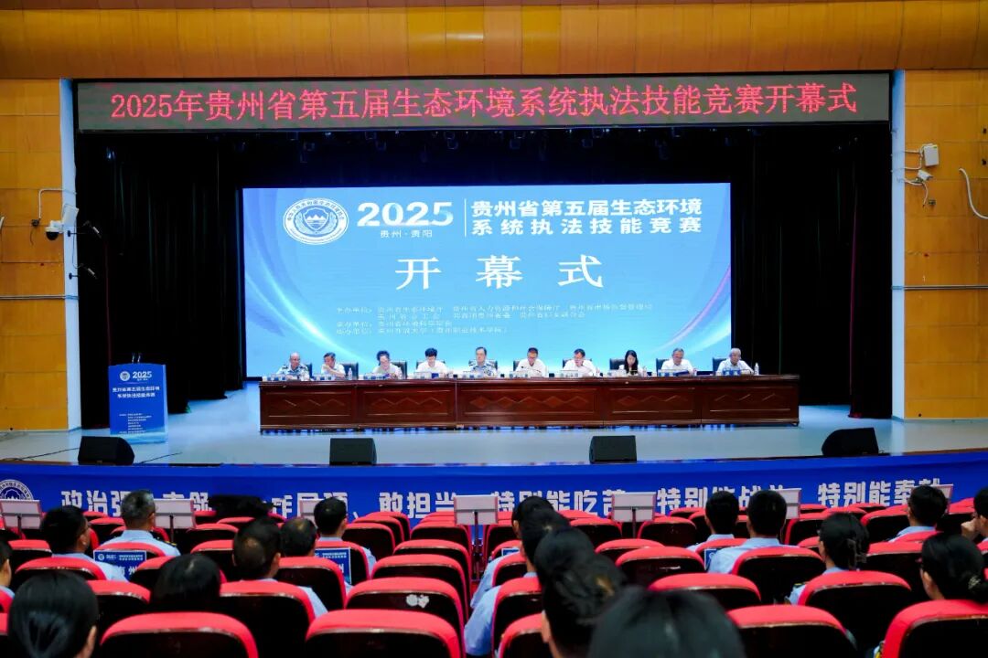 9月16日,2025年贵州省第五届生态环境系统执法技能竞赛在贵州开放大学开幕。省生态环境厅党委委员、副厅长罗鸿翔、贵州开放大学党委副书记罗玲龙出席开幕式并致辞,省环境监察局党委书记、局长翁敬主持开幕式,省市场监管局、团省委、省妇联、省环境监察局、省环境科学学会相关负责人及各参赛队领队和参赛队员参加开幕式。开幕式前参赛队员进行了队列训练、理论测试等科目。
