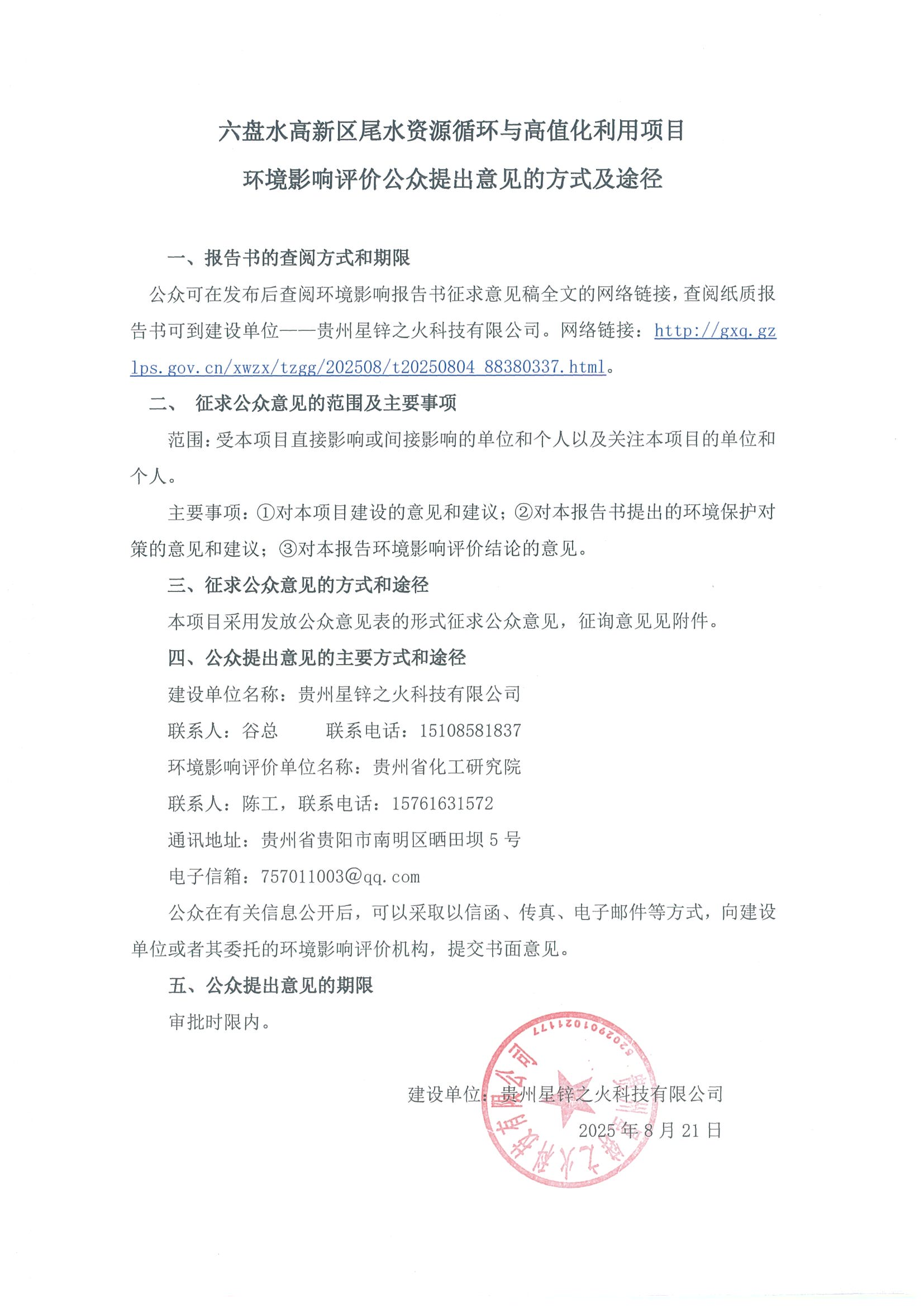 六盘水高新区尾水资源循环与高值化利用项目 |