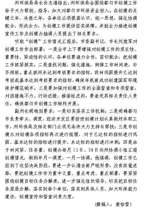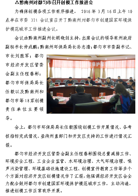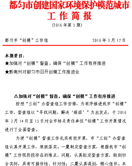 都匀市创建国家环境保护模范城市工作简报(2016年第5期)