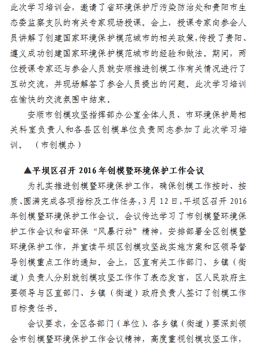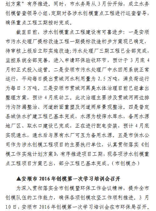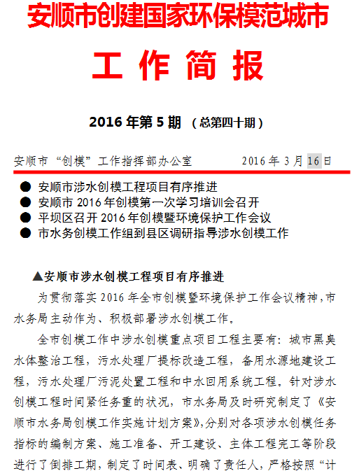 安顺市创建国家环保模范城市工作简报(2016年第5期)