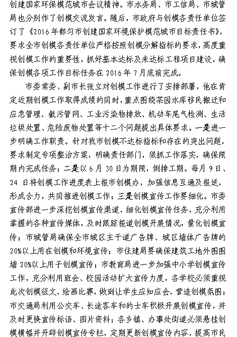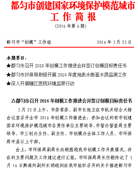 都匀市创建国家环境保护模范城市工作简报(2016年第6期)