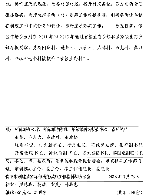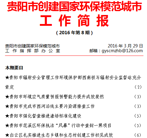 贵阳市创建国家环保模范城市工作简报(2016年第8期)