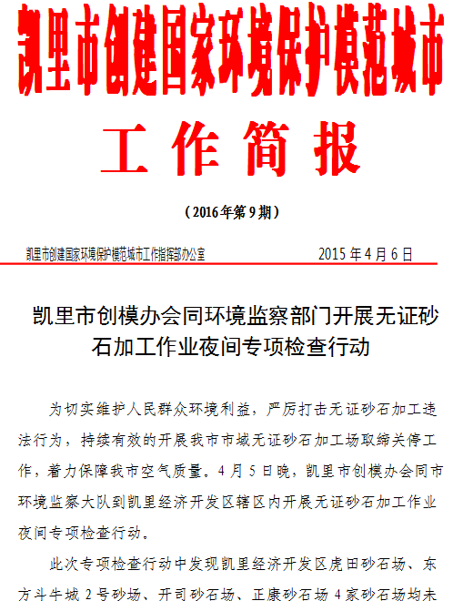 凯里市创建国家环保模范城市工作简报(2016年第九期)