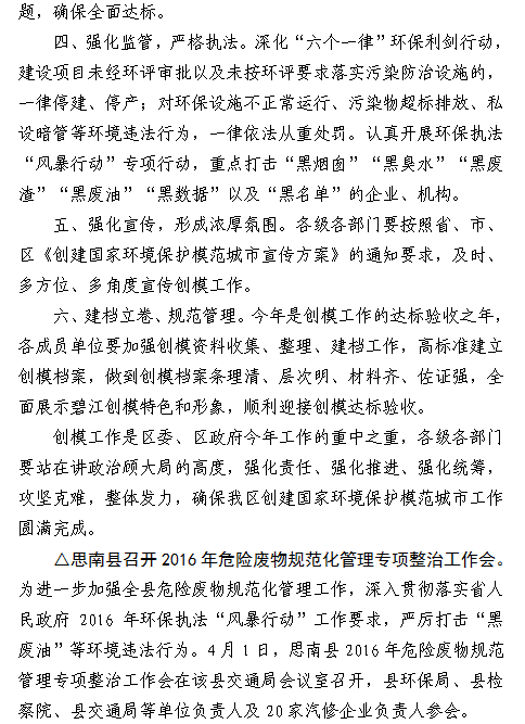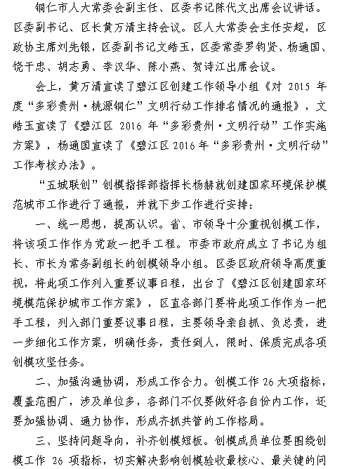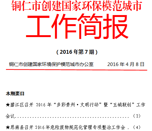 铜仁市创建国家环保模范城市工作简报(2016年第7期)