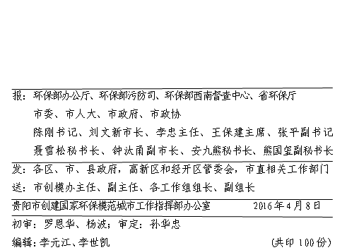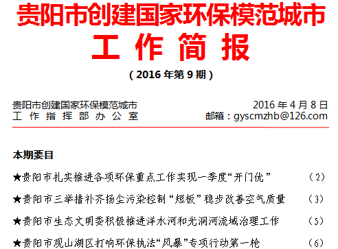 贵阳市创建国家环保模范城市工作简报(2016年第9期)